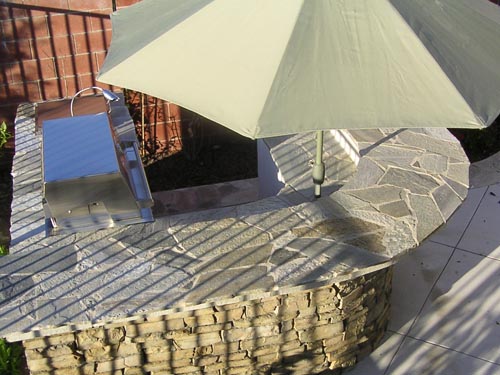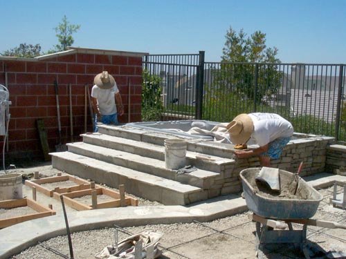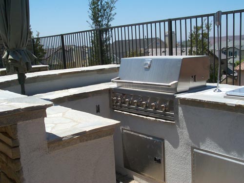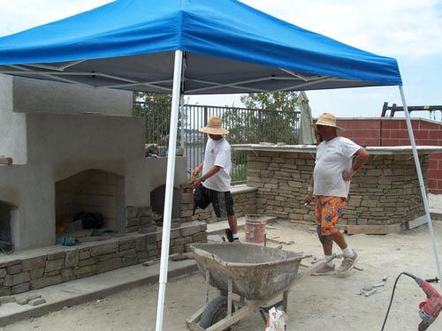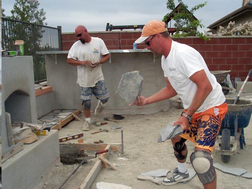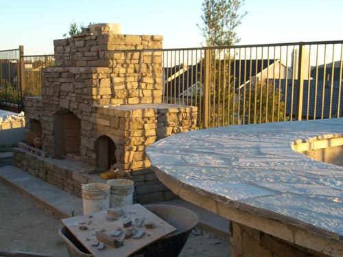 Please view our featured home where we take you from start to finish with an elaborate gallery of 65 pictures. See the first day we broke ground on this project which incorporated random quartzite stone, manufactured stone, steps, block walls, fireplace, bbq, patio cover, vault for above ground spa, and complete softscape installation.
